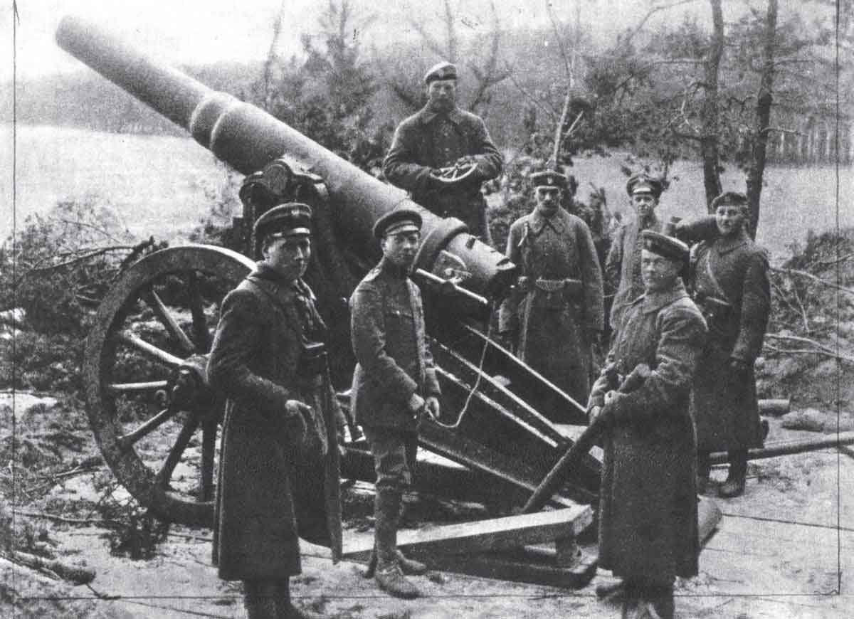 Działo „Barbara” z baterii artylerii ciężkiej na stanowisku pod wsią Zatom Stary k. Międzychodu, luty 1919 r. Fot. z albumu M. Olszewskiego, Powstanie Wielkopolskie 1918–1919, Koszalin 2008